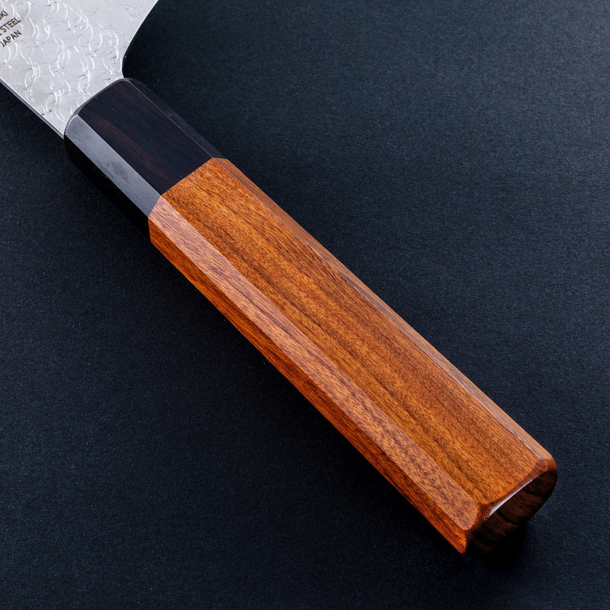 柄は銘木の一種で水に強いローズウッドの八角柄を採用。