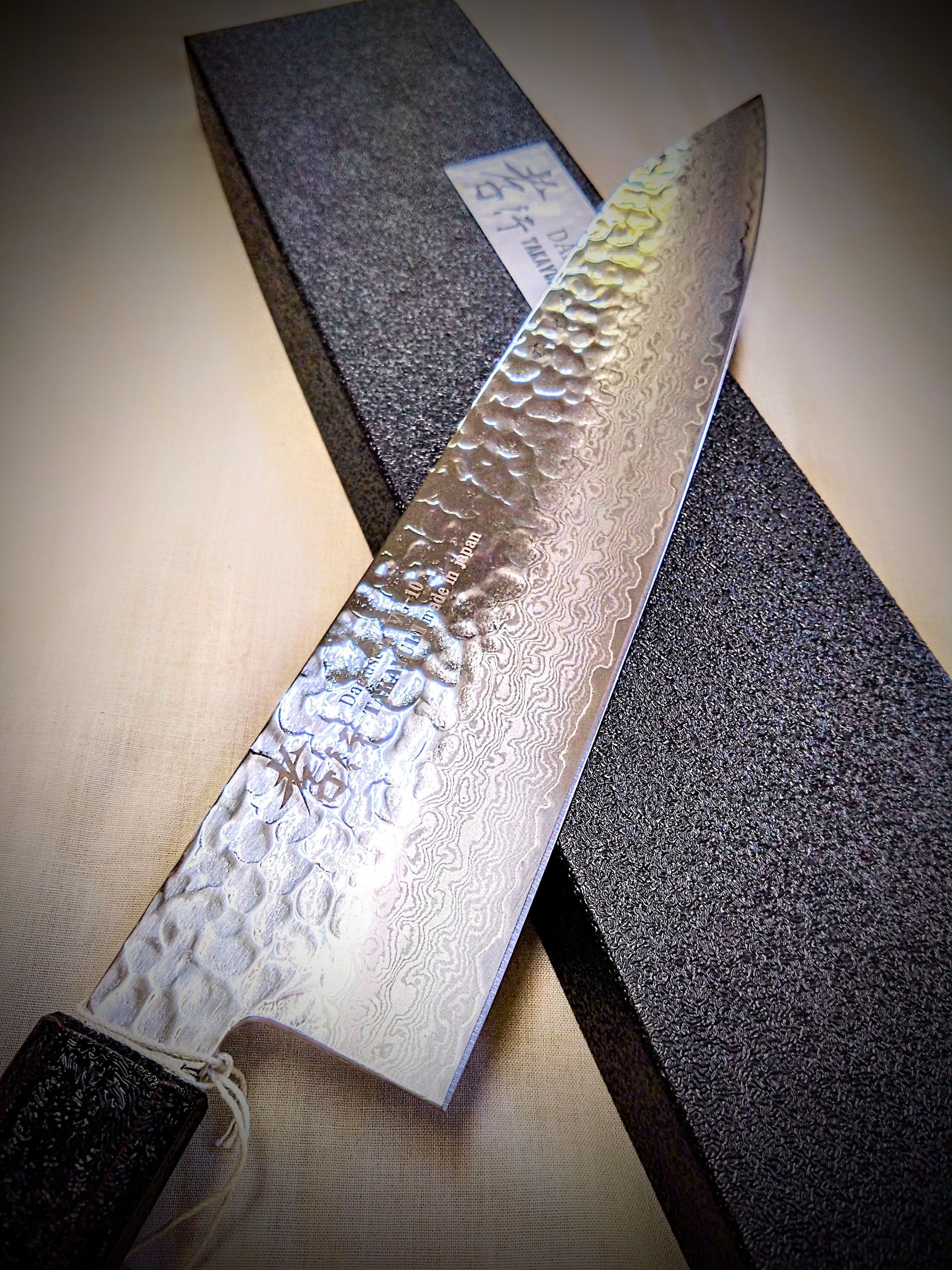 刃の表面には【槌目】そろそろハンマーで戦ったような模様がつきますが、見た目のカッコ良さだけでなく食材を輪切りにしたときに、刃と食材の間に空気が入ることで切り捨てを良くするという実用的な効果があります。