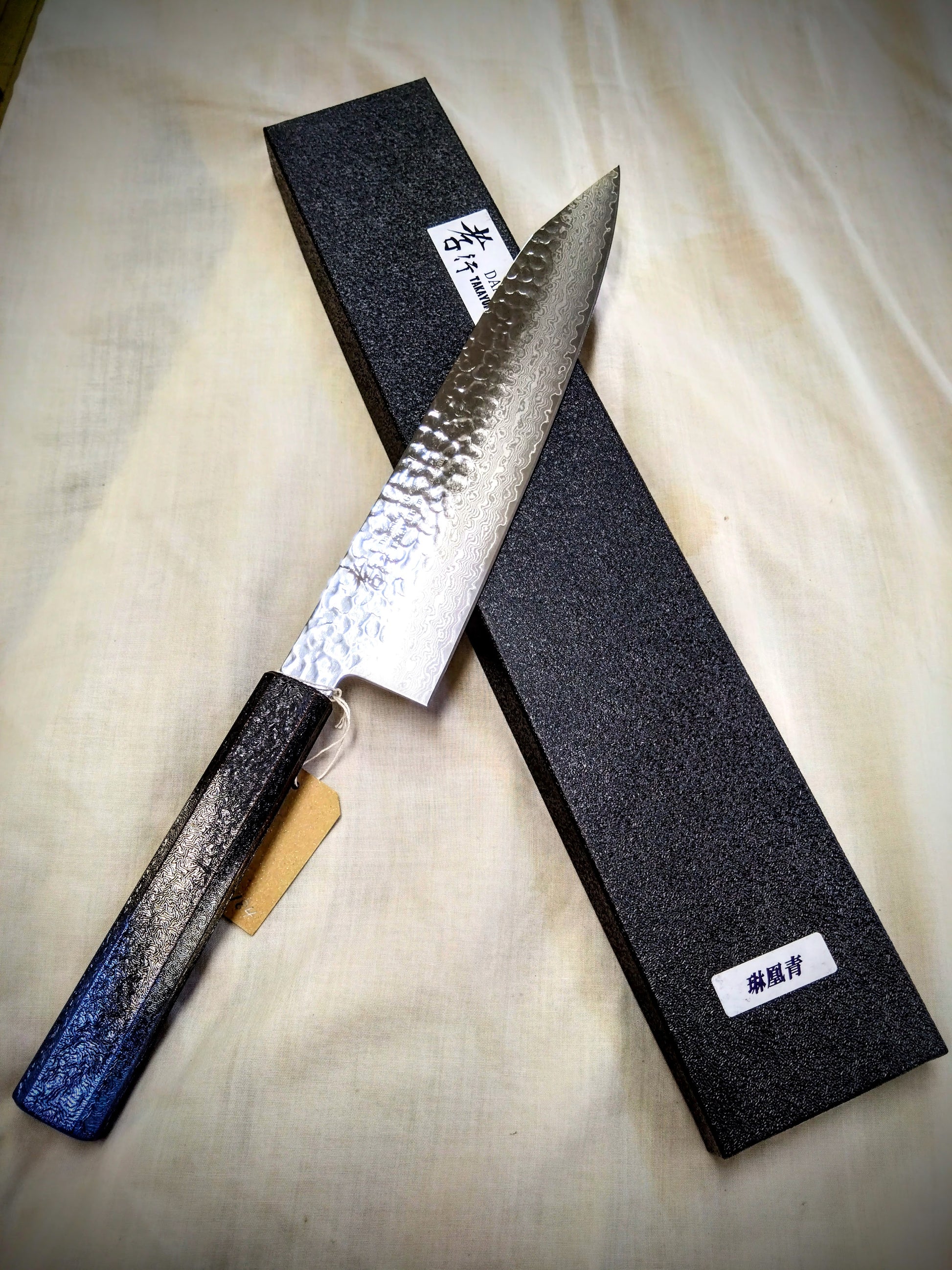 堺孝行 VG-10 33層ダマスカス 剣型牛刀190㎜ 樫漆シリーズ 琳凰青