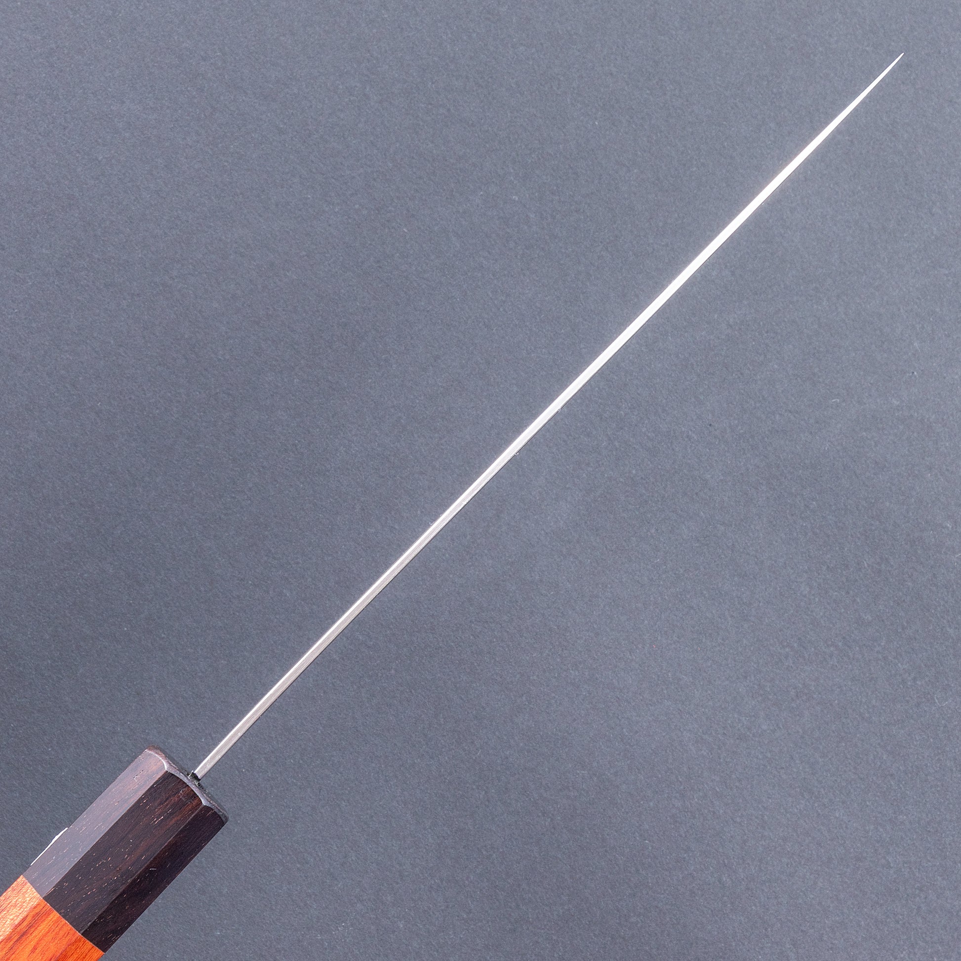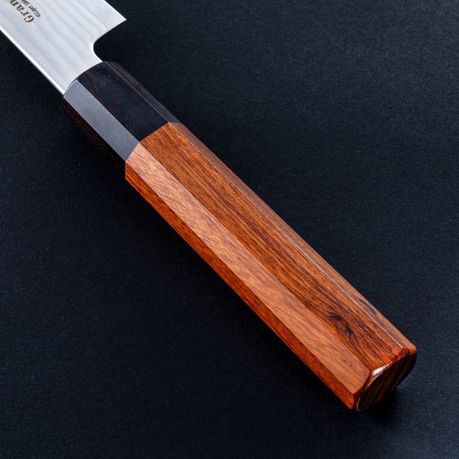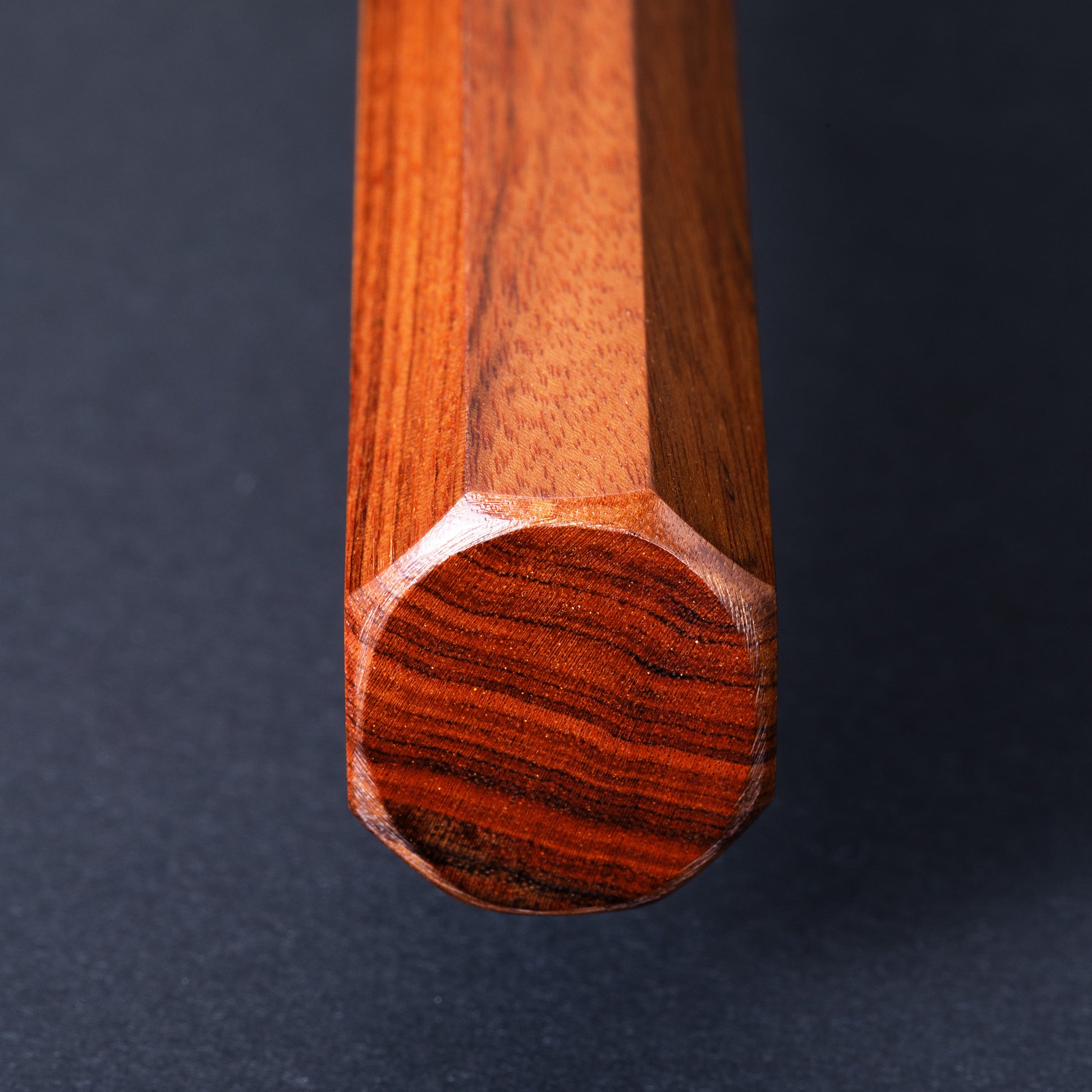 柄は銘木の一種で水に強いローズの八角柄を採用。