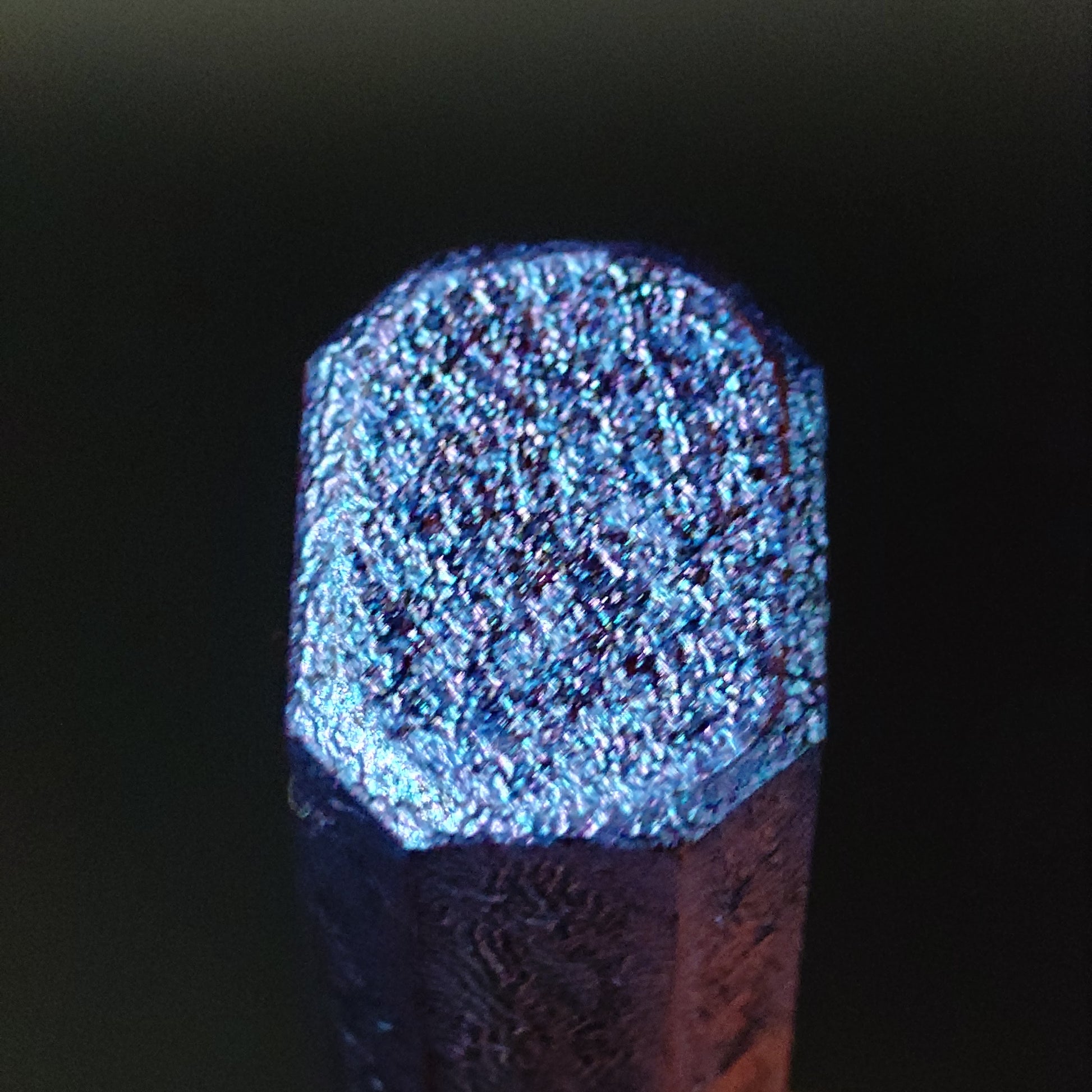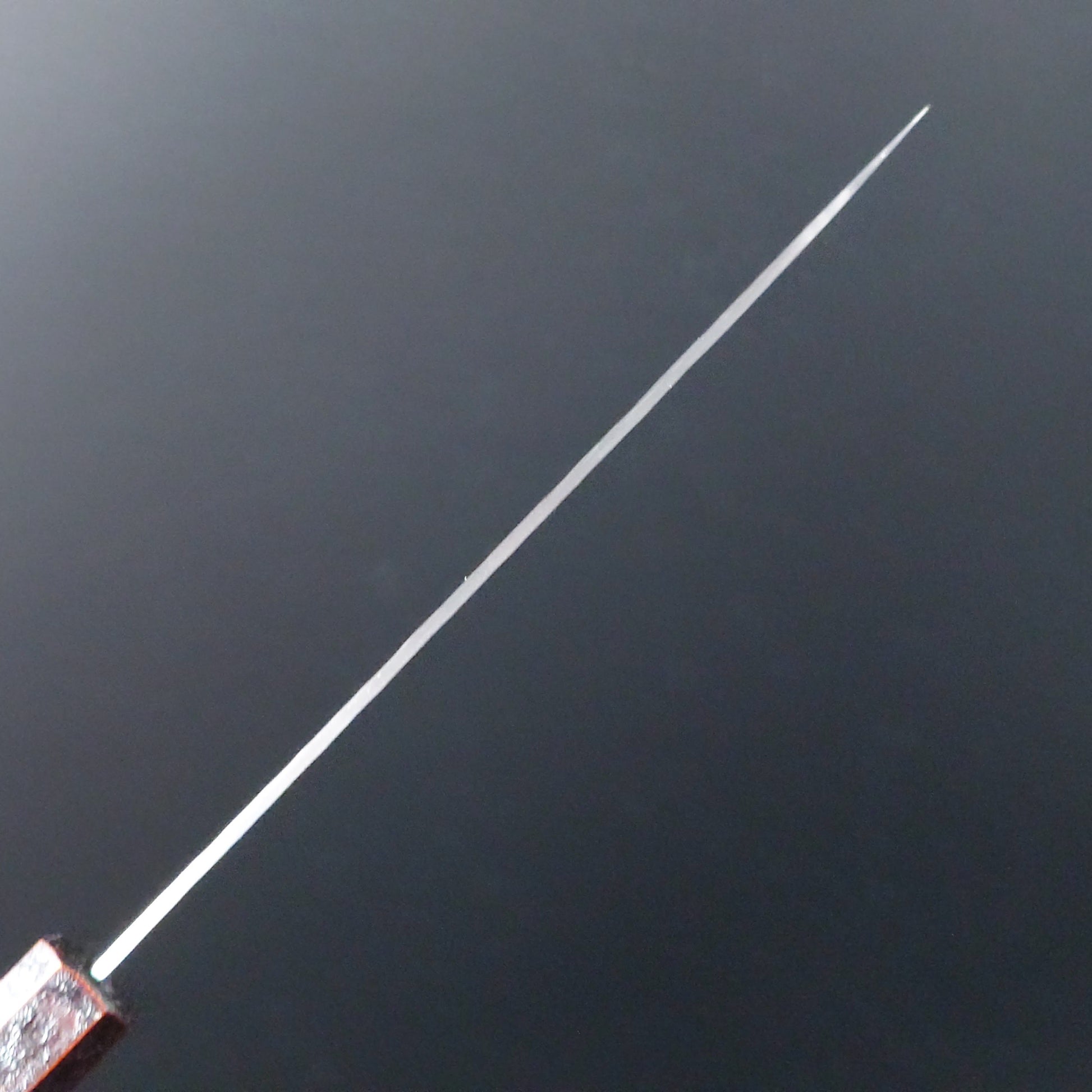 芯材のVG-10(V金10号)は高級刃物に使われる鋼材として評価の高い鋼材です。 切れ味の鋭さ、サビに対する強さ(耐食性)においても現在の主流の鋼材です。