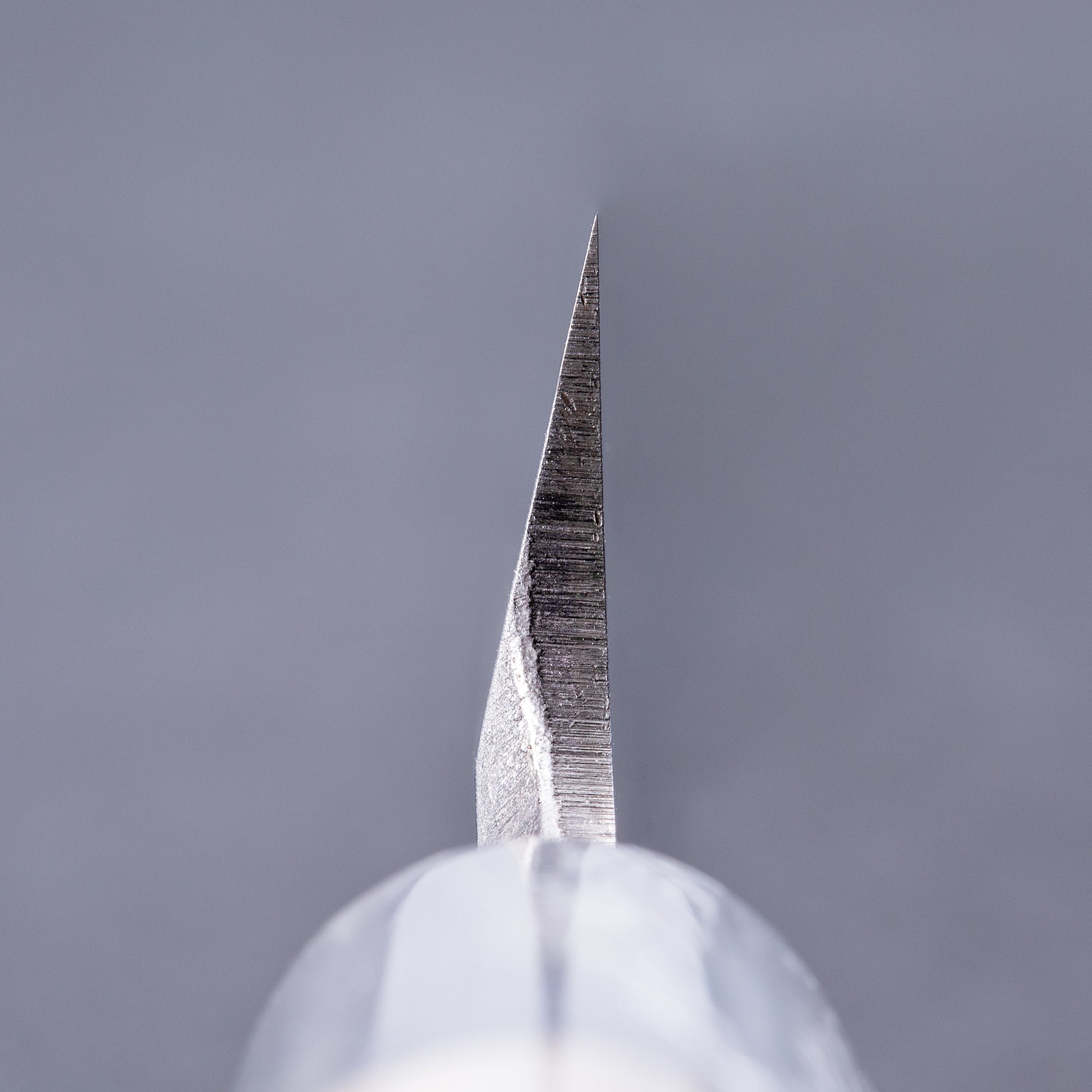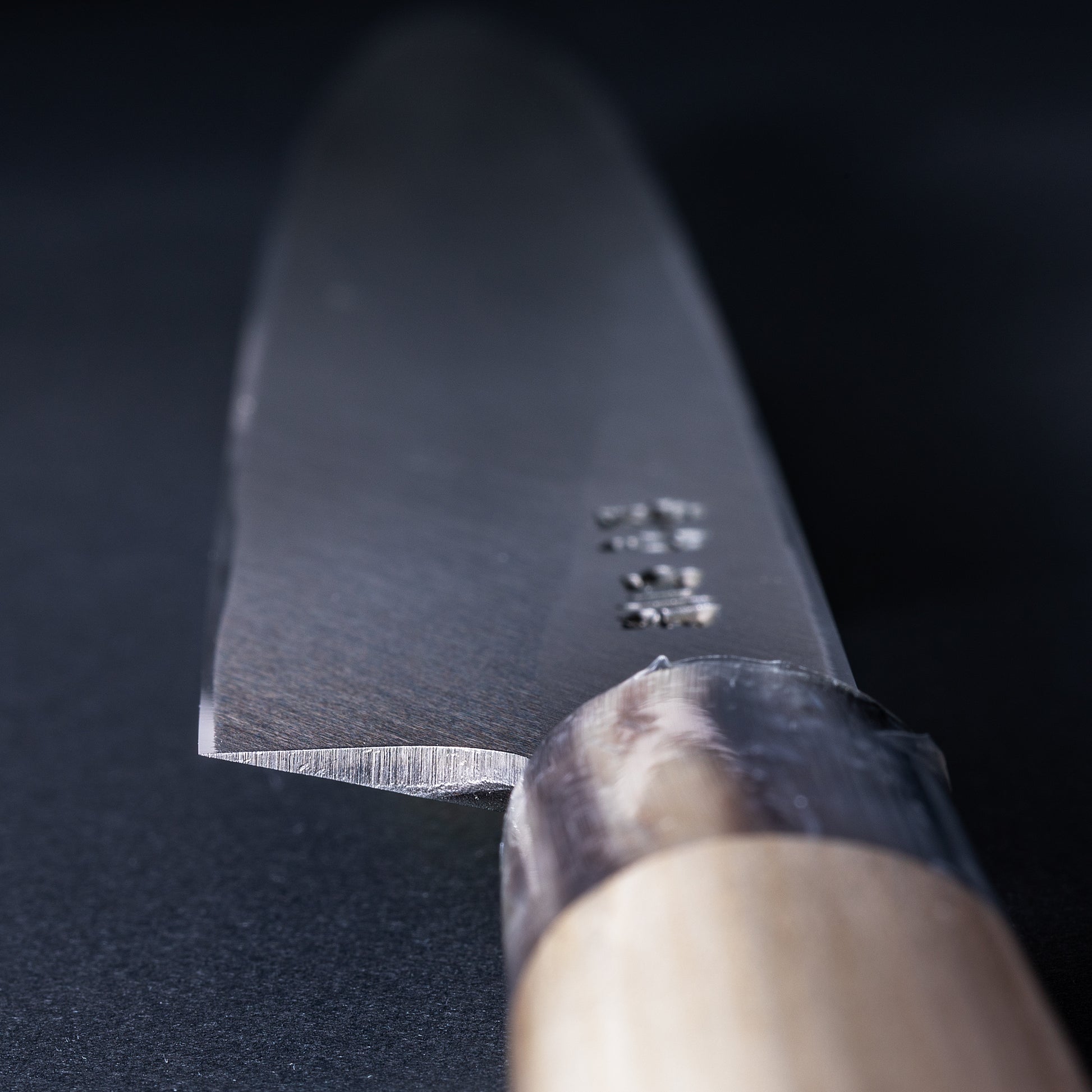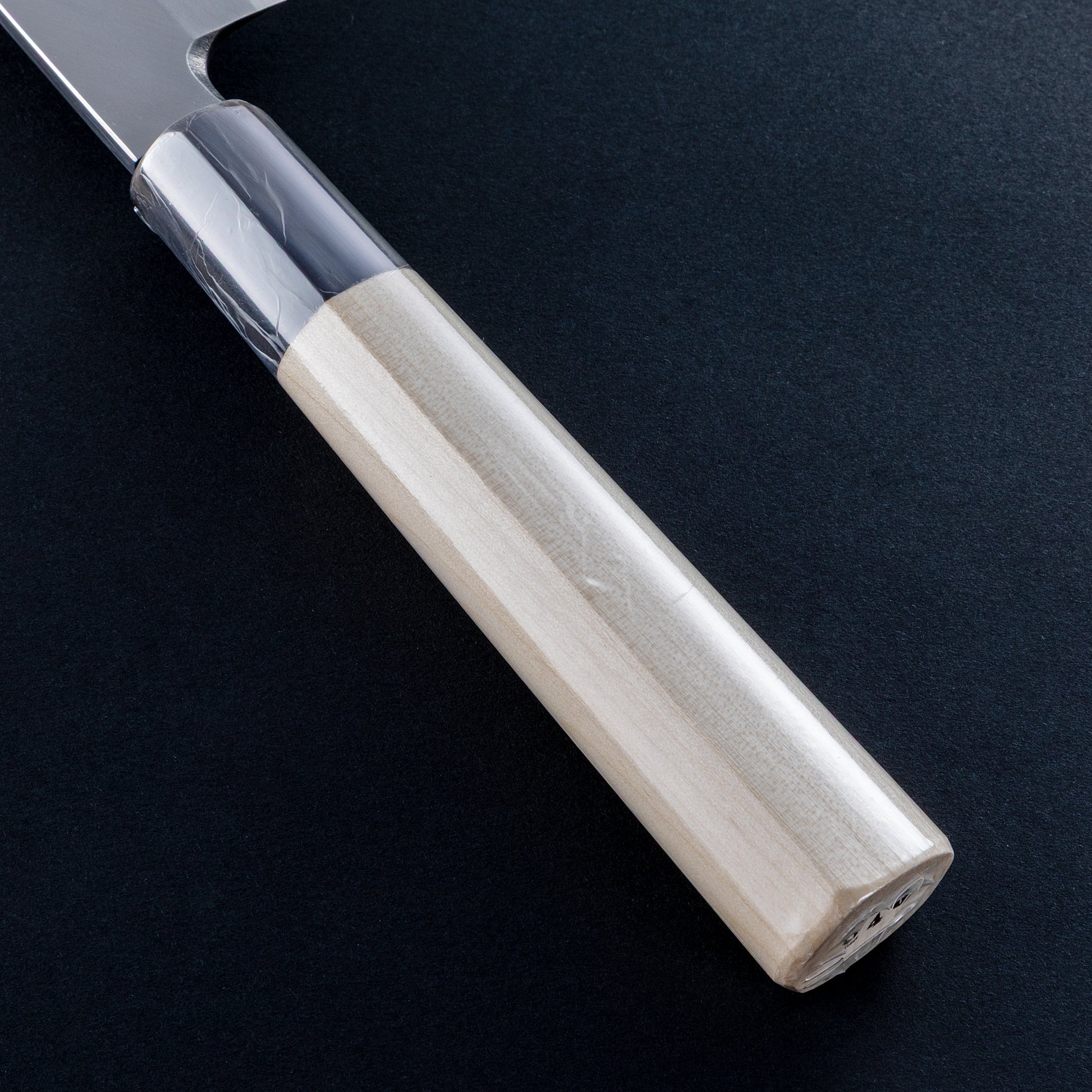 使用鋼材は白紙二号鋼白二鋼)。白紙二号鋼を低温で鍛錬、切れ味と切れ味の持続性を両立させました。また、このグレードの中では精度の高い造りとなっており、その後の砥ぎ直しも楽です。