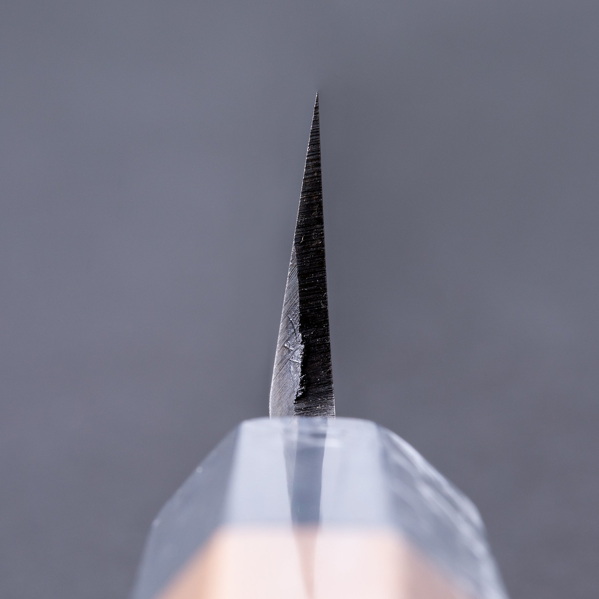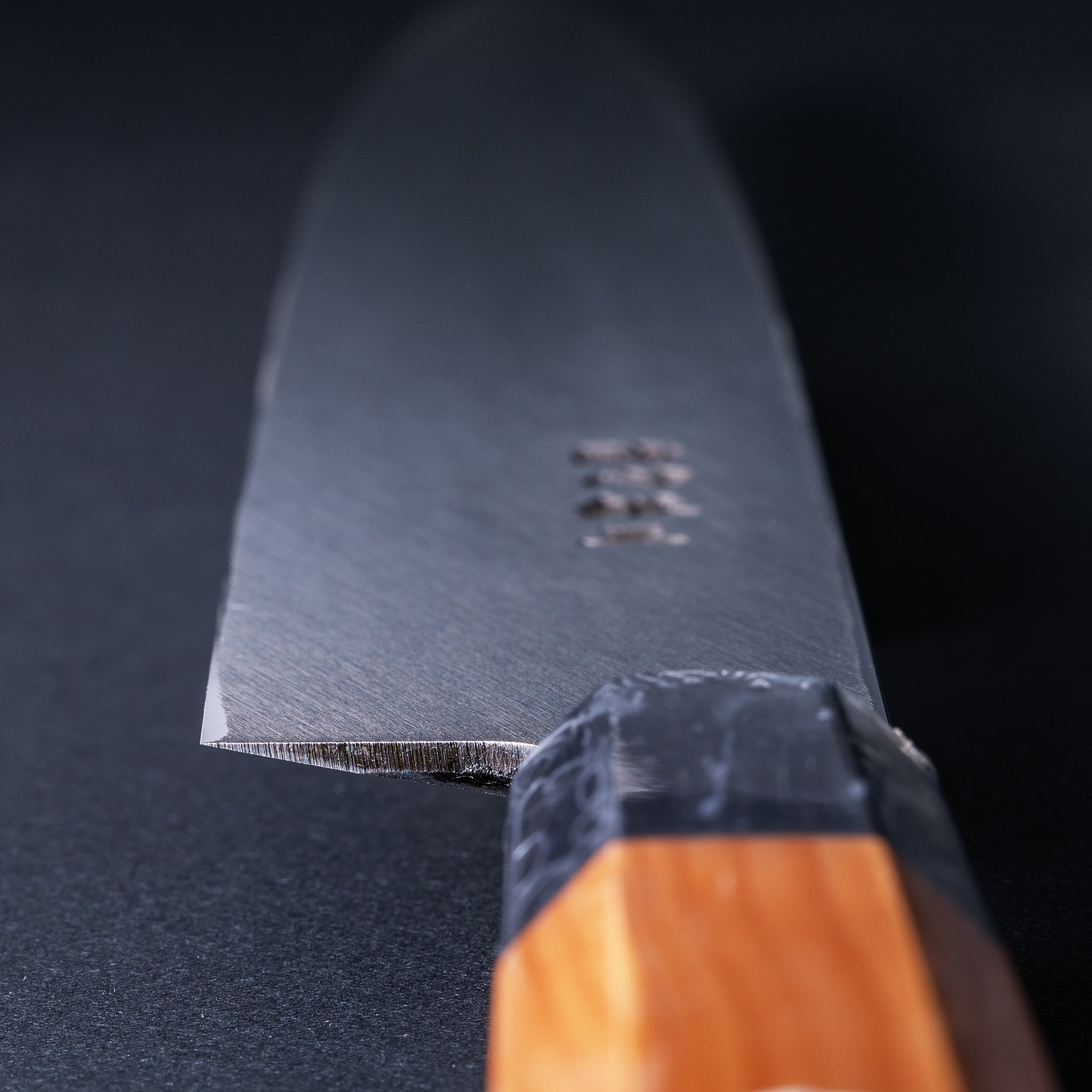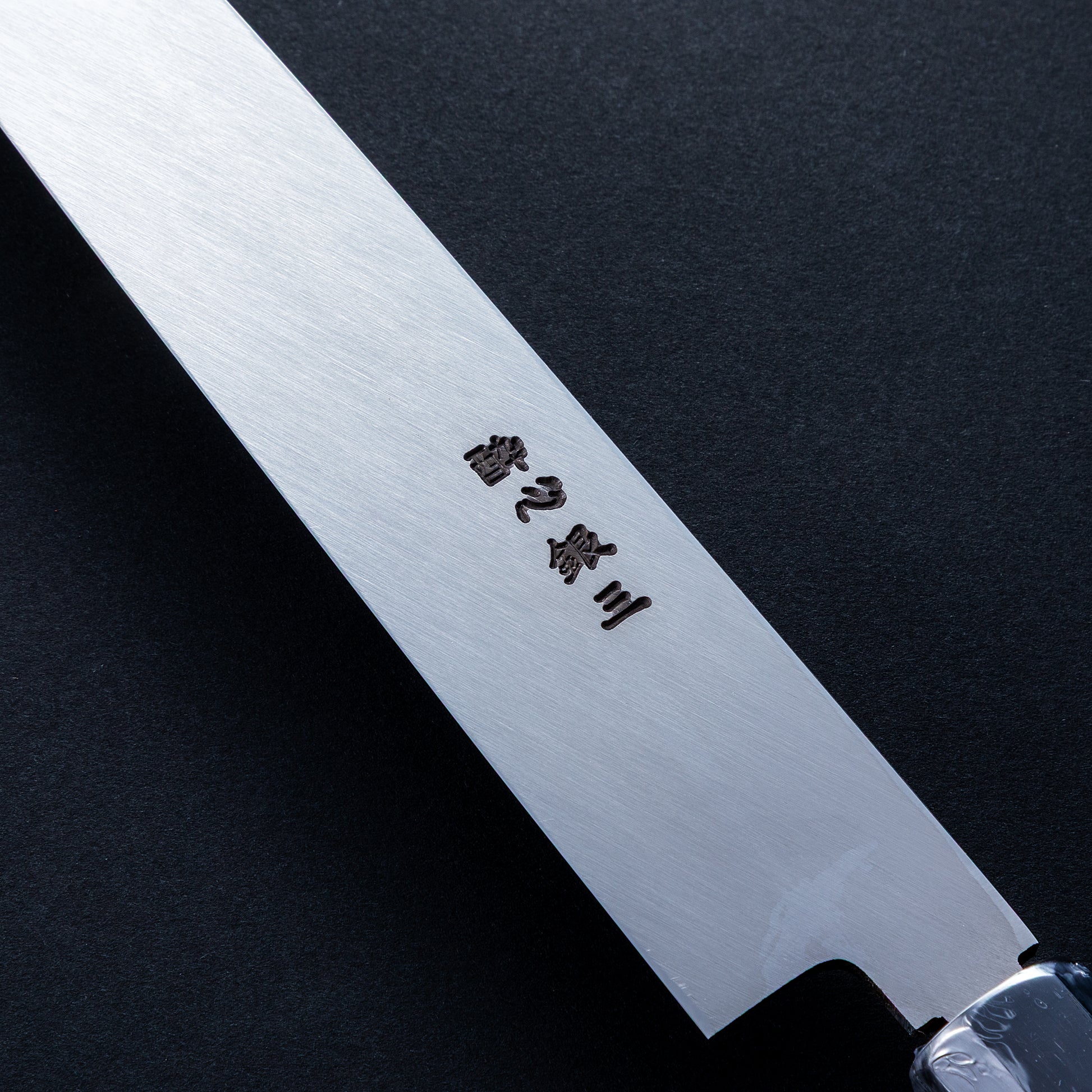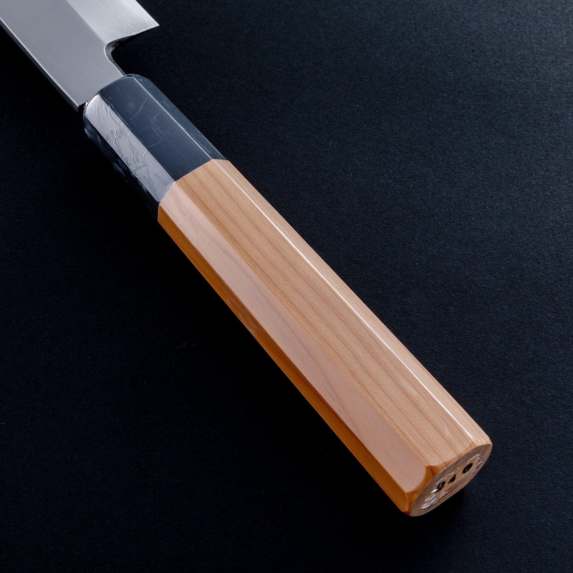 使用鋼材はステンレスで和包丁には最も適している銀紙三号鋼(銀三鋼)を使用しております。 ステンレス製の和包丁にありがちな砥ぎにくさや切れ味があまり続かないようなステンレス鋼の欠点を改善しています。